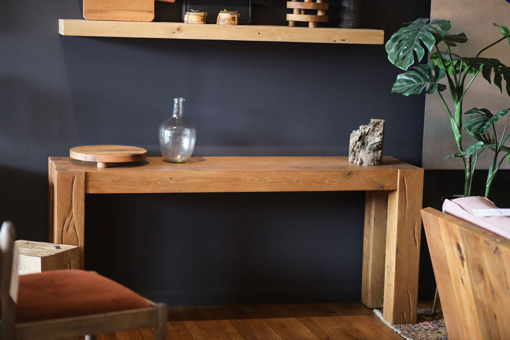 Meet Roberto—the little sibling to our beloved Robert Table. Handcrafted from century-old white oak, this compact console carries all the charm and heritage of the original. Perfect for entryways, hallways, or behind a sofa, Robertsito brings a touch of family history and timeless style to any space.